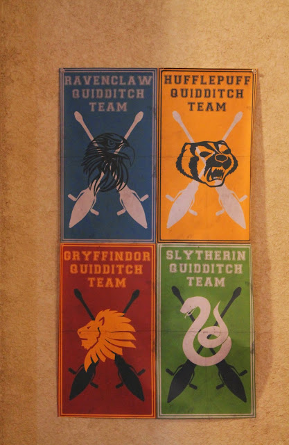 I saw some really great ideas for Herbology class. But in the end it was a last minute addition so I just went with some plain flowers and I thought at least the girls would like it. The poster above the flowers I actually 4 posters that I just taped together.